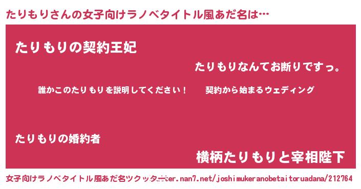 | 胡散臭い通販商品みたいなあだ名 | 『億万長者になれるブレスレット…その名も「たりもり」』 |