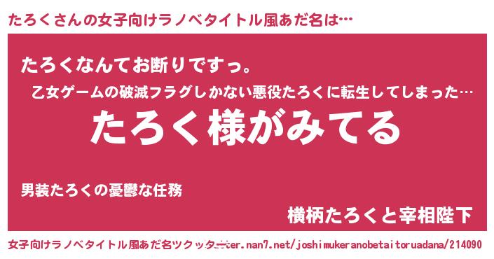 | ヘコむあだ名 | 『たろぷりん』『たろく(笑)』 |