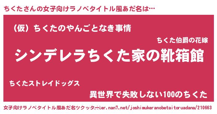 | 胡散臭い通販商品みたいなあだ名 | 『必ず成功する霊験あらたかなお札…その名も「ちくた」』 |