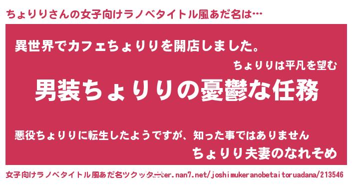 | 意味不明あだ名 | 『永久保存ちょりり』 |
