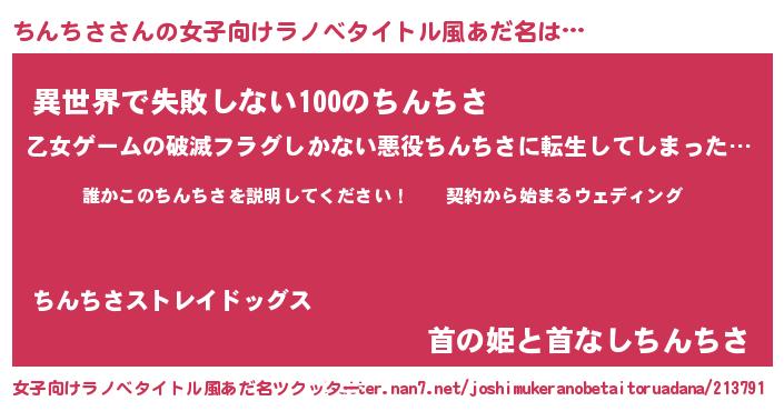 | ヘコむあだ名 | 『ちんふぇ~』『ちんちさ(小並感)』 |