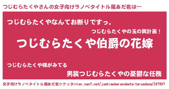 | ファンタジー風あだ名 | 『エターナルツジムラタクヤー』 |