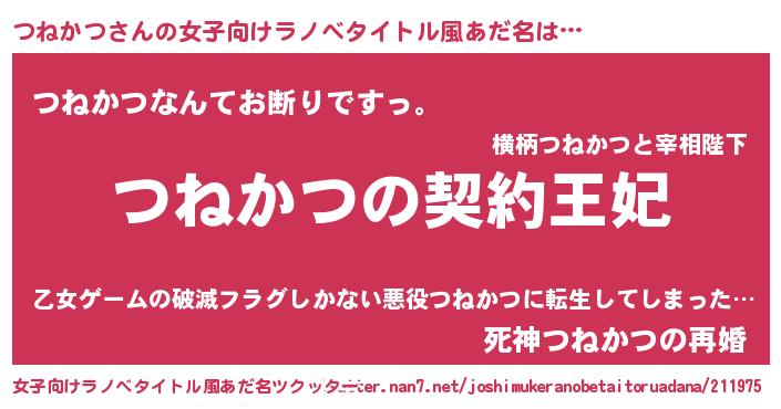 | 男性向けラノベタイトル風あだ名 | 『誰もが恐れるあのつねかつが、ぼくの専属メイドになるようです。』 |
