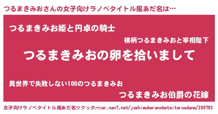 | 男性向けラノベタイトル風あだ名 | 『つるまきみおの嫁は女の子じゃないと思った?』 |
