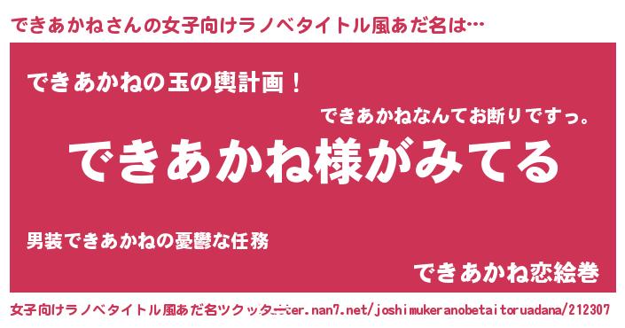 | 意味不明あだ名 | 『とにかく怪しいできあかね』 |