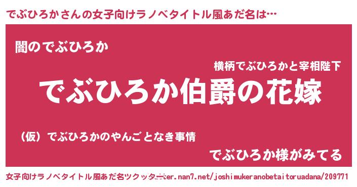 | 男性向けラノベタイトル風あだ名 | 『うちの娘の為ならば、俺はもしかしたらでぶひろかも倒せるかもしれない。』 |
