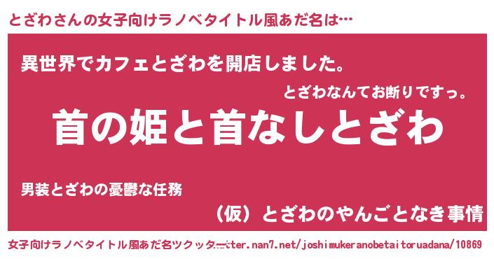 | 男性向けラノベタイトル風あだ名 | 『はたらくとざわさま!』『とざわの憂鬱』 |