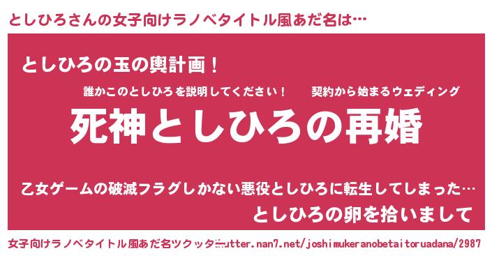 | 男性向けラノベタイトル風あだ名 | 『ノーゲーム・ノートシヒロ』 |