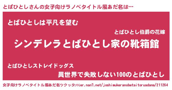 | 男性向けラノベタイトル風あだ名 | 『緋弾のトバヒトシ』 |