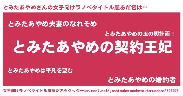 | 胡散臭い通販商品みたいなあだ名 | 『来世でも幸せになれる水素水…その名も「とみたあやめ」』 |