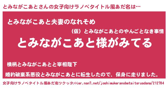 | 男性向けラノベタイトル風あだ名 | 『とみながこあとの嫁は女の子じゃないと思った?』 |