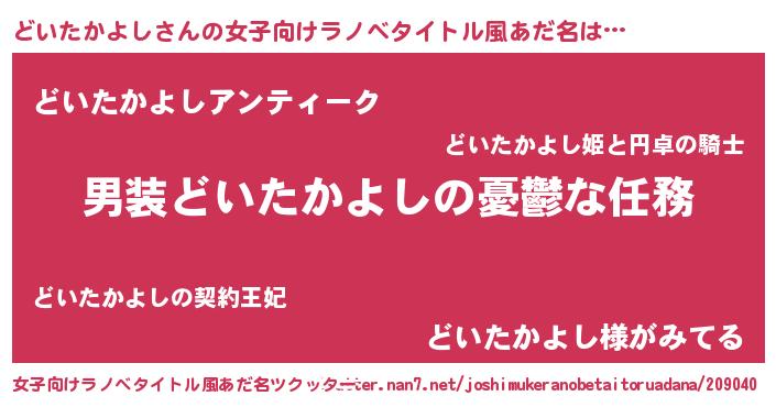 | 男性向けラノベタイトル風あだ名 | 『うちのどいたかよしが世界を掌握している!』 |