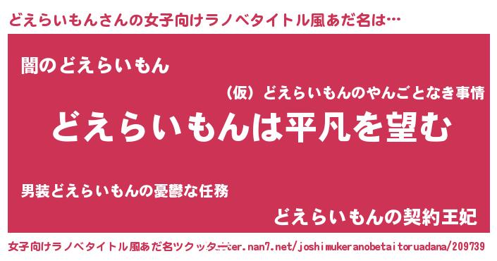 | ヒーロー風カッコイイあだ名 | 『暗黒騎士ドエ』『ネオドエライモン』 |