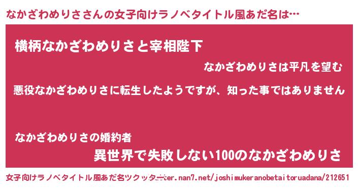 | 男性向けラノベタイトル風あだ名 | 『この素晴らしい世界になかざわめりさを!』 |