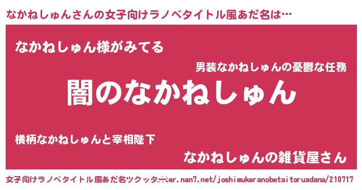 | 男性向けラノベタイトル風あだ名 | 『Re:なかねしゅんから始める異世界生活』 |