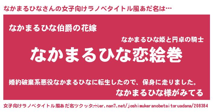 | 男性向けラノベタイトル風あだ名 | 『ノーゲーム・ノーナカマルヒナ』 |