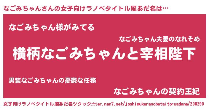 | 男性向けラノベタイトル風あだ名 | 『なごみちゃんに滅ぼされるだけの簡単なお仕事です』 |