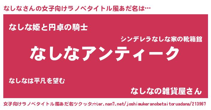 | 男性向けラノベタイトル風あだ名 | 『魔法科高校のなしな』 |