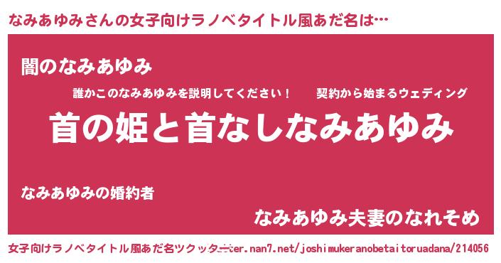 | 恥ずかしいあだ名 | 『ナミアユミデラックス』『なみっちょ』 |