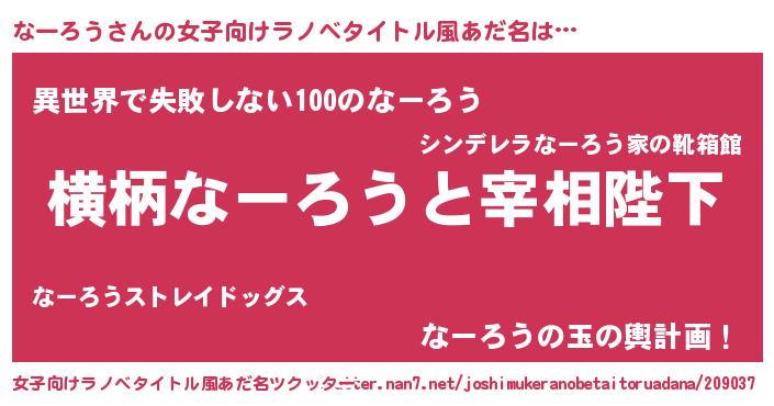| 男性向けラノベタイトル風あだ名 | 『なーろうに滅ぼされるだけの簡単なお仕事です』 |