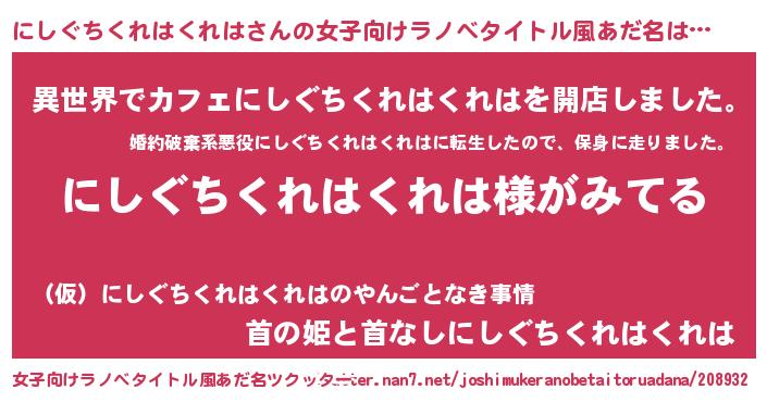 | 伝説のあだ名 | 『覚醒した遊び人にしぐちくれはくれは』 |