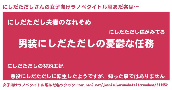 | 男性向けラノベタイトル風あだ名 | 『うちのにしだただしが世界を掌握している!』 |