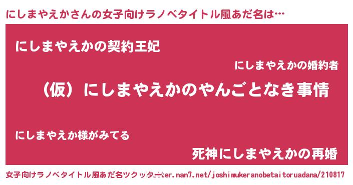 | 胡散臭い通販商品みたいなあだ名 | 『必ず成功する霊験あらたかなお札…その名も「にしまやえか」』 |