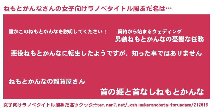 | 意味不明あだ名 | 『住所不定無職ねもとかんな(47歳)』 |