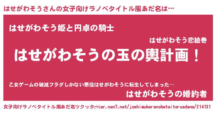 | ヒーロー風カッコイイあだ名 | 『スーパーハセガワソウ』『仮面ハセダー』 |