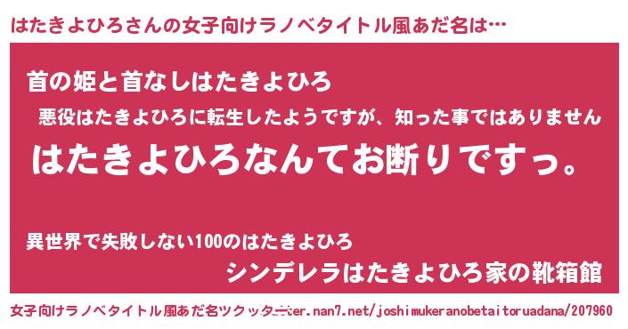 | 意味不明あだ名 | 『自称はたきよひろ』 |