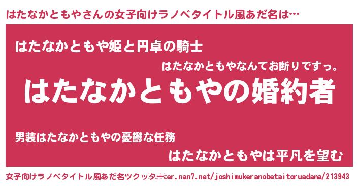 | ファンタジー風あだ名 | 『エターナルハタナカトモヤー』 |