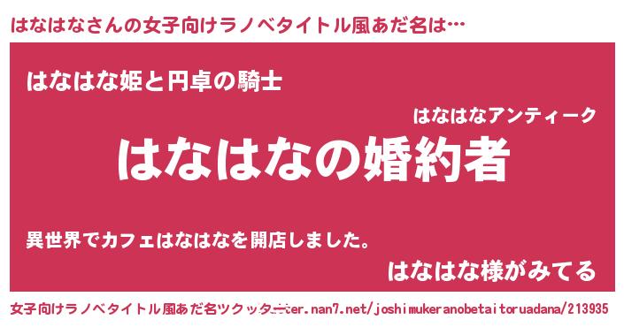 | ファンタジー風あだ名 | 『エターナルハナハナー』『ハナフェル』 |