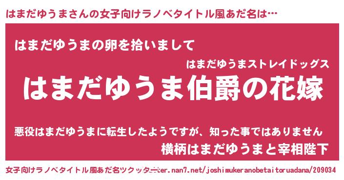 | ファンタジー風あだ名 | 『エターナルハマダユウマー』 |
