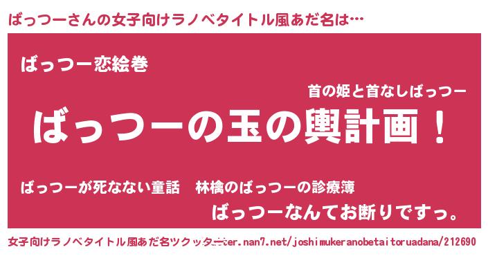 | ヒーロー風カッコイイあだ名 | 『慈愛の使者ばっつー』『仮面バッダー』 |