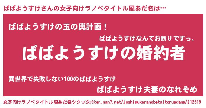 | 胡散臭い通販商品みたいなあだ名 | 『運命の人と巡り会える高級そうな絵画…その名も「ばばようすけ」』 |