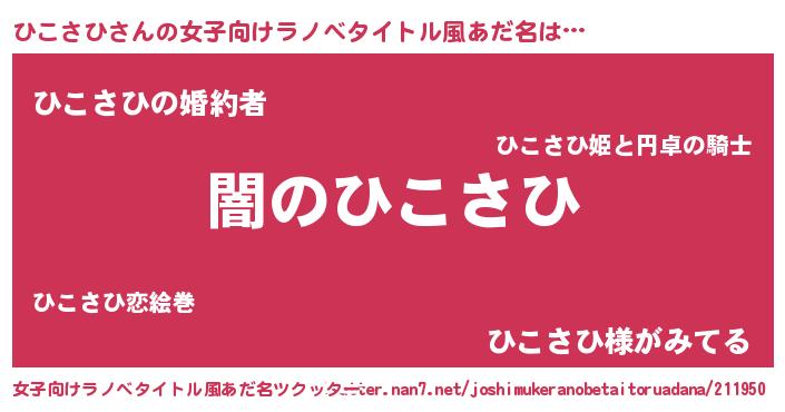 | 男性向けラノベタイトル風あだ名 | 『Re:ひこさひから始める異世界生活』 |