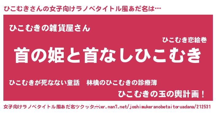 | ファンタジー風あだ名 | 『エターナルヒコムキー』『クインヒット』 |