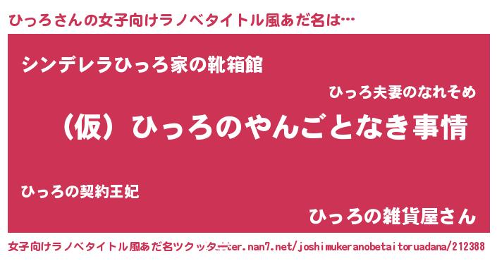 | 男性向けラノベタイトル風あだ名 | 『ひっろの憂鬱』 |
