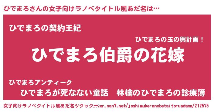 | 男性向けラノベタイトル風あだ名 | 『うちの娘の為ならば、俺はもしかしたらひでまろも倒せるかもしれない。』 |