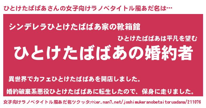 | ファンタジー風あだ名 | 『エターナルヒトケタババアー』 |