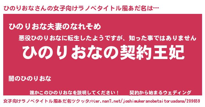 | 胡散臭い通販商品みたいなあだ名 | 『来世でも幸せになれる健康食品…その名も「ひのりおな」』 |