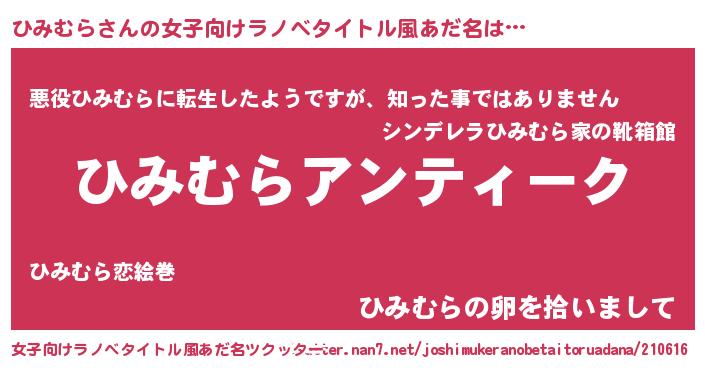 | 男性向けラノベタイトル風あだ名 | 『魔法科高校のひみむら』 |