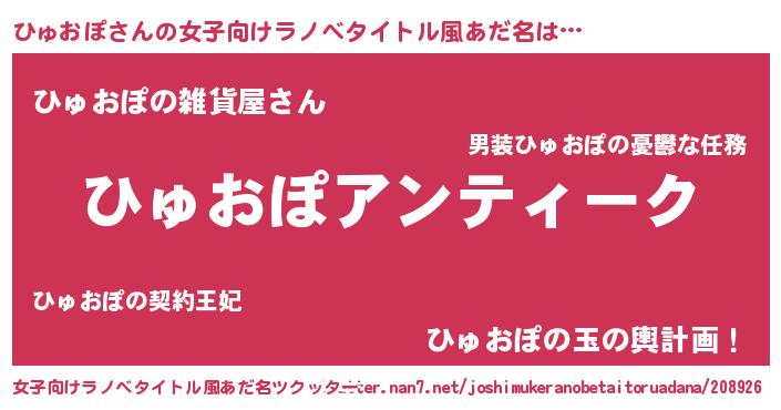 | 男性向けラノベタイトル風あだ名 | 『魔法科高校のひゅおぽ』 |