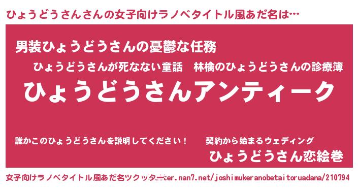 | 男性向けラノベタイトル風あだ名 | 『魔法科高校のひょうどうさん』 |