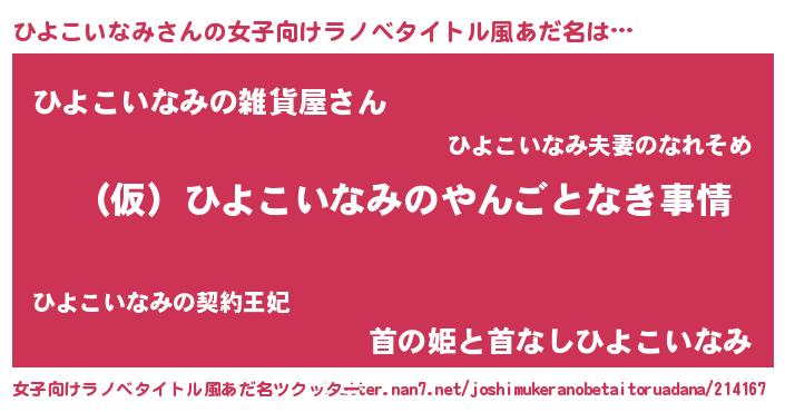 | 男性向けラノベタイトル風あだ名 | 『ひよこいなみの憂鬱』 |