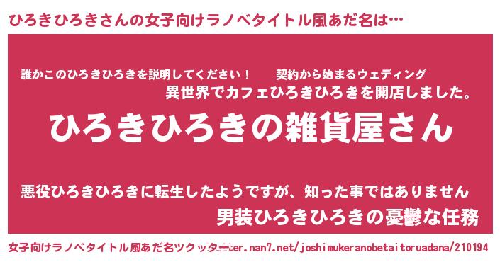| 男性向けラノベタイトル風あだ名 | 『やはりひろきひろきの青春ラブコメはまちがっている 』 |