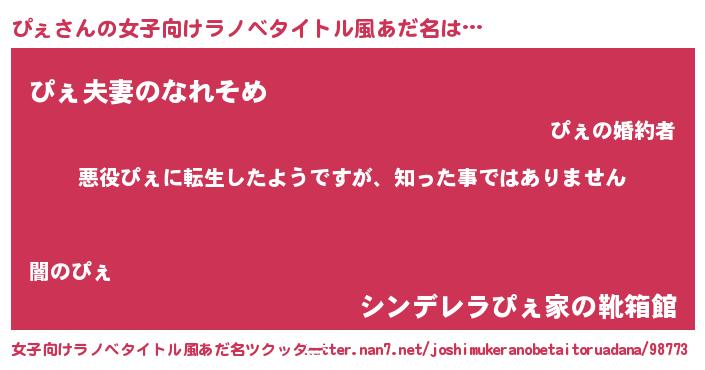 | 男性向けラノベタイトル風あだ名 | 『この素晴らしい世界にぴぇを!』 |