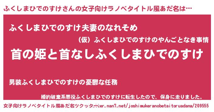 | 男性向けラノベタイトル風あだ名 | 『はたらくふくしまひでのすけさま!』 |