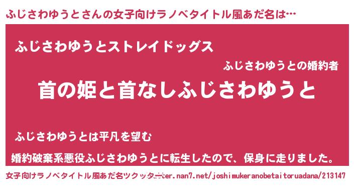 | 男性向けラノベタイトル風あだ名 | 『はたらくふじさわゆうとさま!』 |