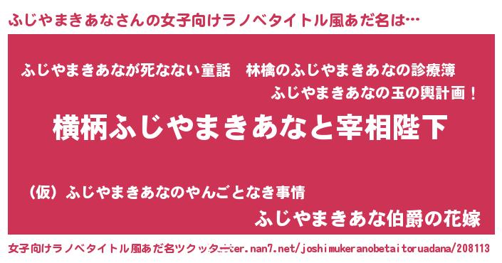 | 男性向けラノベタイトル風あだ名 | 『ふじやまきあなに滅ぼされるだけの簡単なお仕事です』 |